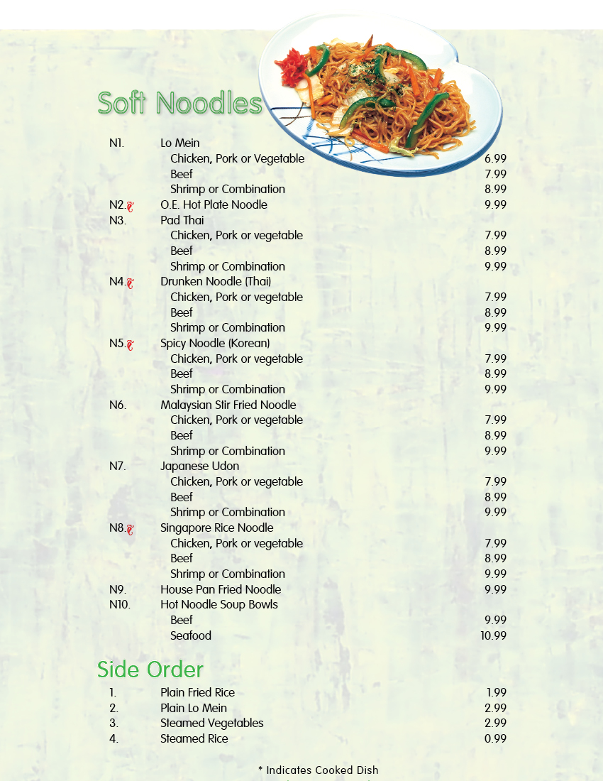 Dine In Menus(堂吃菜单样品)